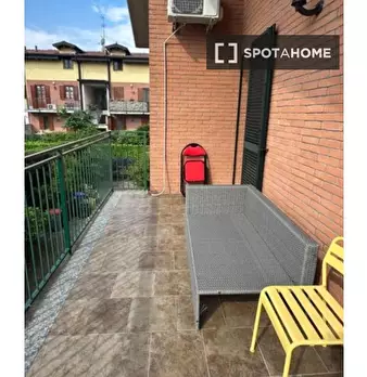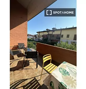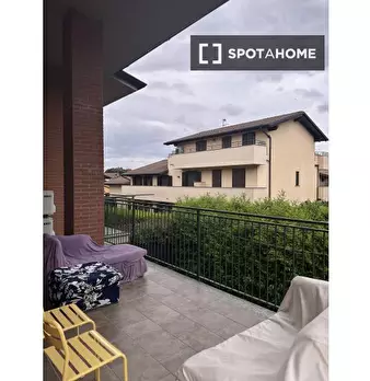 Questa stanza arredata in un appartamento condiviso con 4 camere da letto situato a Trivolzio è pronta per l'affitto. L'immobile è dotato di riscaldamento centralizzato e aria condizionata individuale, ideali per il comfort durante tutto l'anno. S...