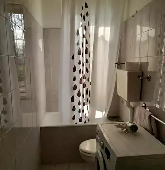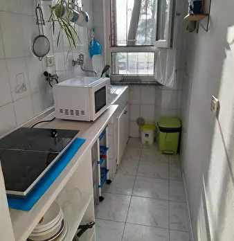 Large single room with queensize bed and private balcony. 3rd floor with elevator. Equipped kitchen, 4 gas cookingfire, oven, microwave, fridge with freezer, balcony with little table and 2 chairs. Bathroom with washingmachine. 5 walkingsmins to P...