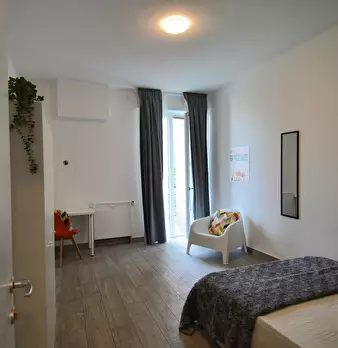 In the city centre, near Unimore, a strategic and sought-after location, we rent a beautiful single room renovated specifically to offer comfort and convenience to our students. The room is equipped with a queen bed, 3-door wardrobe, desk, bedside...