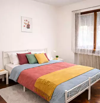 Apartment with two private rooms, shared kitchen, bathroom and parking. Bright and well connected neighborhood. Supermarket, pizzeria, pharmacy, sports centre with swimming pool, laundry are easily accessible on foot. Walking distance: Bus Statio...