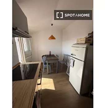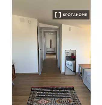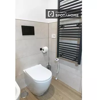 Questa camera in un appartamento condiviso con 5 camere da letto offre aria condizionata e riscaldamento centralizzati, vista sull'esterno e arredamento completo. La cucina attrezzata include un forno e una lavatrice è disponibile. Il Wi-Fi è incl...