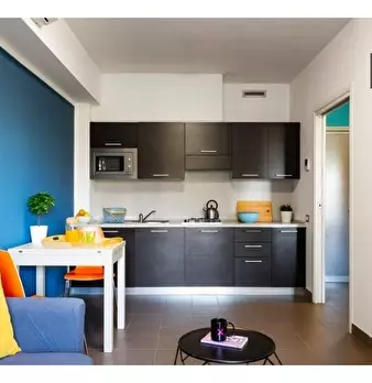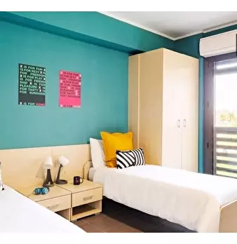 Appartamento con una camera da letto con due letti singoli, cucina, bagno. ​ **1.540 posti letto**, suddivisi in 17 unità su un'area di **50.000 mq** con **15.000 mq di aree verdi**. Questo campus è **il più grande alloggio per studenti in Itali...