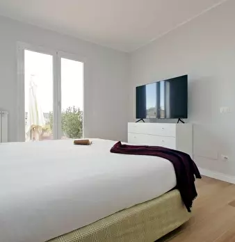 Questo elegante appartamento con 3 camere da letto a Tuscolano Nord, Roma, è completamente arredato e dispone di lavatrice privata. È dotato di aria condizionata individuale, cucina attrezzata e Wi-Fi affidabile, che lo rendono uno spazio abitativ...