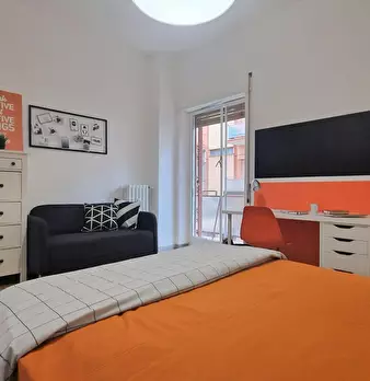 Spacious room with double bed size, private balcony and private fridge for rent in a 3 (hidden)/young workers apartment with 1 bathroom in Quadraro area, convenient to reach easily La Sapienza University and Tor Vergata University.. The apartment ...