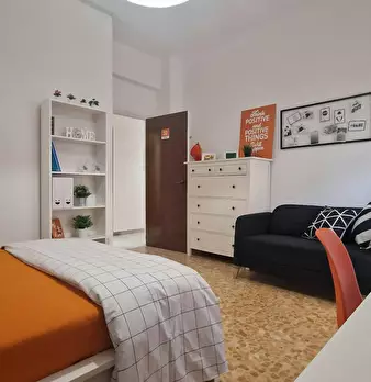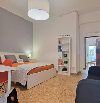 Spacious room with double bed size and private fridge for rent in a 3 (hidden)/young workers apartment with 1 bathroom in Quadraro area, convenient to reach easily La Sapienza University and Tor Vergata University.. The apartment is on the 5th flo...