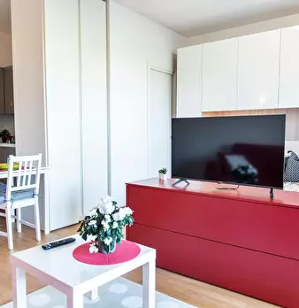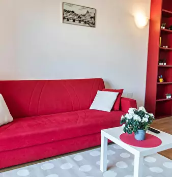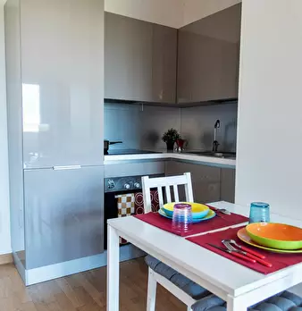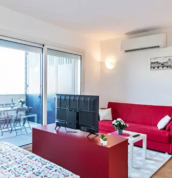 Large, welcoming studio apartment equipped with every comfort, with a large terrace that offers a pleasant view of the hills surrounding the capital. The apartment, also ideal for couples, has a double bed with container and a sofa bed and is made...
