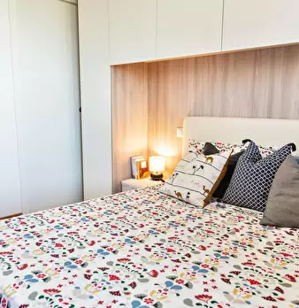 This two-bedrooms apartment opens onto the living area with open kitchen and dining table stand out, and the conversation area with double sofa bed and TV. In the sleeping area there are two double bedrooms and two bathrooms with shower and toilet...