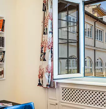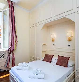 This stunning apartment is located on the second floor (with elevator) of a historic building in the heart of the famous Monti neighborhood, just steps from the Colosseum, Piazza Venezia, and the Roman Forum. The apartment comprises a bright livin...