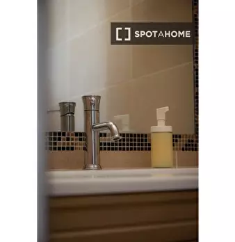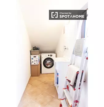 Questa confortevole camera in un appartamento condiviso con 7 camere da letto a Malafede è completamente arredata, dotata di riscaldamento a gas naturale e cucina attrezzata per la vostra comodità. Godetevi l'accesso a un balcone privato e la poss...