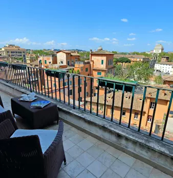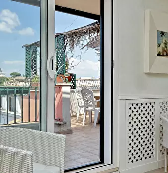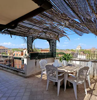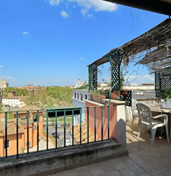 Incredibile attico e superattico con vista spettacolare sui tetti di Roma e sull'isola Tiberina, situato nel caratteristico quartiere di Trastevere a 500 m dalla Sinagoga e dallo storico ghetto ebraico. Rione Trastevere apartment offre un grande s...