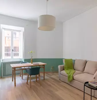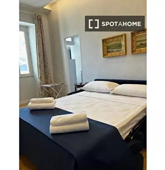 Questo appartamento completamente arredato con una camera da letto situato nel Rione Ponte, a Roma, è la scelta ideale per chi cerca comfort e praticità. L'appartamento dispone di lavatrice privata, aria condizionata centralizzata e cucina attrezz...