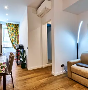 Questo spazioso appartamento con 2 camere da letto è completamente arredato e offre comfort moderni per un soggiorno confortevole. Include aria condizionata centralizzata per un ambiente piacevole, lavatrice in comune, lavastoviglie, forno e TV, p...