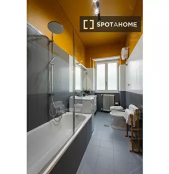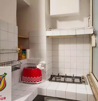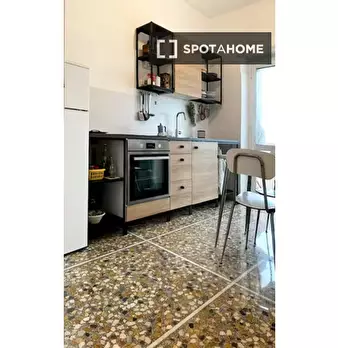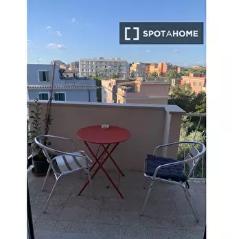 Scopri questo appartamento con una camera da letto situato a Garbatella, Roma. L'immobile è completamente arredato e offre un ambiente confortevole per professionisti e coppie. Dispone di aria condizionata individuale, lavatrice privata e cucina a...