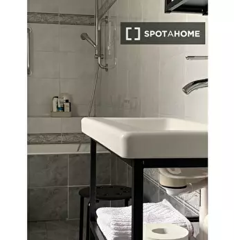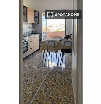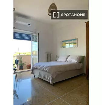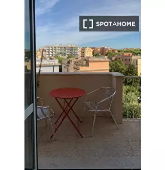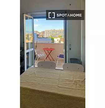 Benvenuti in questo appartamento condiviso con 2 camere da letto a Casal Palocco, Roma. L'appartamento si affaccia sull'esterno e dispone di aria condizionata individuale, riscaldamento a gas naturale e un delizioso balcone. Completamente arredato...