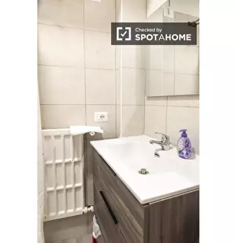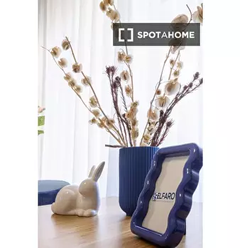 Questa camera calda e accogliente si trova in un appartamento condiviso con 4 camere da letto situato a Torre Angela. Perfettamente arredato e attrezzato per un soggiorno confortevole, questo immobile vanta riscaldamento a gas naturale e servizi c...