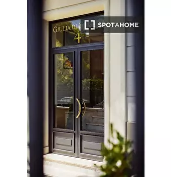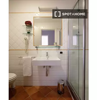 Questa camera arredata si trova in un appartamento condiviso con 2 camere da letto a Casal Bertone. L'appartamento dispone di aria condizionata individuale, cucina attrezzata e lavanderia comune con lavatrice e asciugatrice. La biancheria da letto...