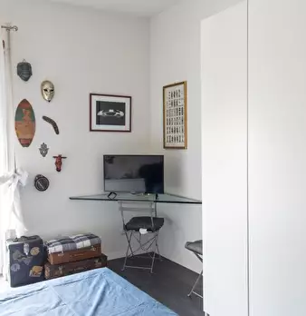 Questo appartamento arredato con 2 camere da letto si trova nel vivace quartiere Rione Monti di Roma. Dotato di comfort essenziali come aria condizionata individuale, ascensore, TV e servizi igienici in comune, offre uno spazio abitativo confortev...