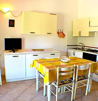 Bilocale di circa 28 mq composto da camera da letto matrimoniale, soggiorno con angolo cottura e divano letto matrimoniale a cassettone, bagno con box doccia, tv, veranda, posto auto condominiale,lavatrici a gettone all'interno del Residence Posti...