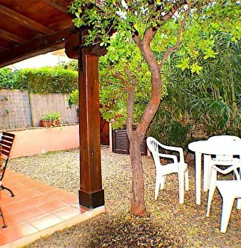 Prossima stagione estiva a San Teodoro: Graziosa villetta immersa nel verde, con ampio giardino angolare, composta da camera da letto matrimoniale, camerata con letto a castello, soggiorno con angolo cottura e divano letto singolo, bagno con box d...