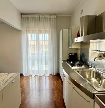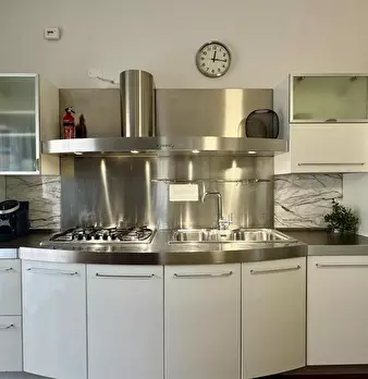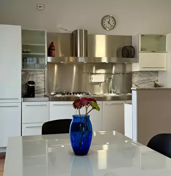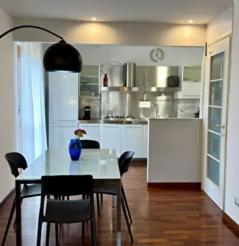 L'appartamento ha una superficie totale di 85 metri quadrati. Ci sono 2 camere da letto con letto matrimoniale e ampi armadi e cassettiere. La zona living è spaziosa e comprende una zona divano con tv, una zona pranzo e una zona cucina completamen...
