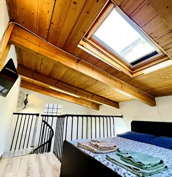 ITA Confortevole e tranquillo bilocale in via Cocconato a 2 passi dal centro e dal Parco del Valentino. Piccolo balcone con affaccio sul cortile interno Soppalco con letto matrimoniale Angolo relax/lettura e all'occorrenza utilizzo del divano Cu...