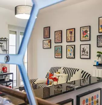 Modern and cozy apartment just outside the historic center of Turin, in an area well connected to the city's main attractions. The apartment is on the sixth floor of a building with an elevator. The entrance opens onto the living area with a well...