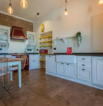 Spacious apartment with balcony, on the fourth floor of a building with elevator 10 minutes from Valentino Park. The house consists of a spacious kitchen with dining table, equipped with oven and dishwasher; a bright living room furnished with a ...