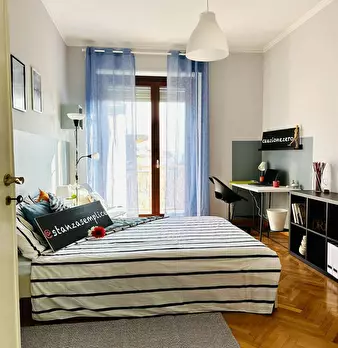 Renovated apartment located at 5 min walk to Piazza Castello, complete with beds, desk, chairs, lights and wardrobe. Shared kitchen equipped with pots, plates, glasses, cutlery, oven, induction hob. Bathroom with shared shower and washing machine....
