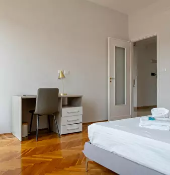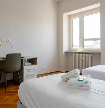 Ottima posizione, di fronte alla fermata della metropolitana, 10 minuti dalla stazione di porta nuova. L'appartamento si trova in uno stabile signorile al 5 piano con ascensore. La stanza è ad uso privato ed anche il bagno è ad uso privato.