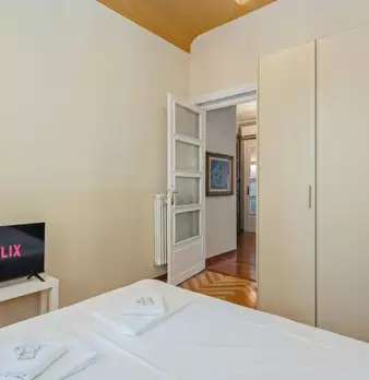 Cerchi la tua prossima casa nel cuore di Torino? Ti presentiamo un elegante appartamento con una camera da letto situato nel quartiere Centro. Questo appartamento completamente arredato è dotato di comfort essenziali come aria condizionata central...