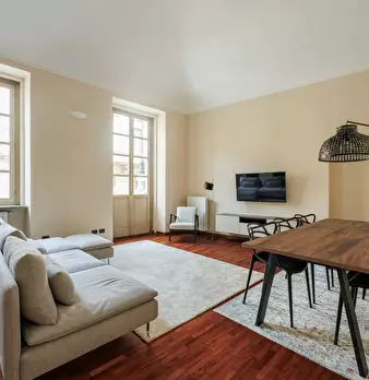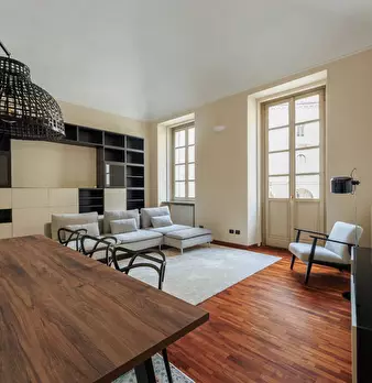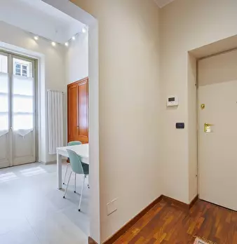 In stabile d'epoca restaurato recentemente, tra Piazza Solferino e Piazza Castello, luminoso appartamento completamente ristrutturato e arredato a nuovo al primo piano con affaccio su Via Bertola. L'immobile è composto da ingresso, cucina, soggior...