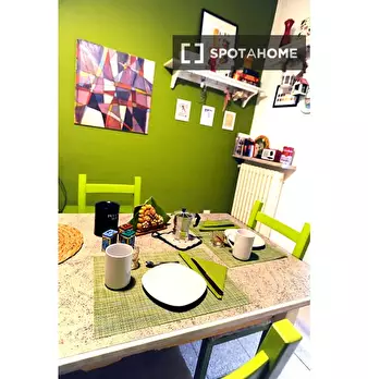 Scopri questa stanza in un appartamento condiviso con 7 camere da letto situato nella vivace zona Mercati Generali-Filadelfia di Torino. Questa proprietà, verificata da Spotahome, è completamente arredata e dotata di ascensore, cucina attrezzata e...