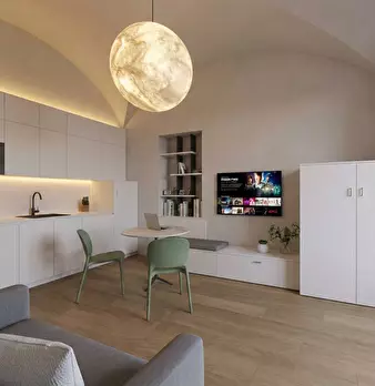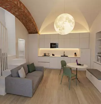 In un elegante palazzo d'epoca oggetto di totale ristrutturazione, proponiamo uno splendido monolocale arredato composto da zona giorno con cucina a vista, tavolo e divano e zona notte sovrastata da un soppalco non abitabile ad uso cabina armadi. ...