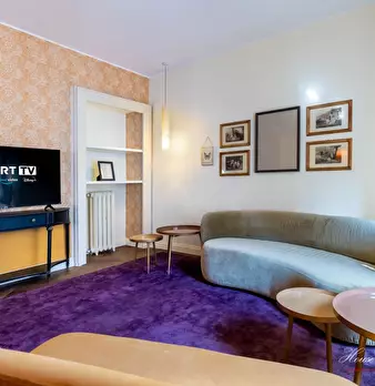 In stabile d'epoca di elevato pregio architettonico appartamento totalmente ristrutturato con finiture di pregio composto da ingresso, ampio zona soggiorno living, cucina, bagno ospiti e lavanderia. Zona notte composta da due ampie camere da letto...