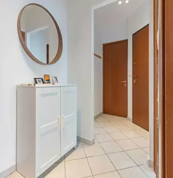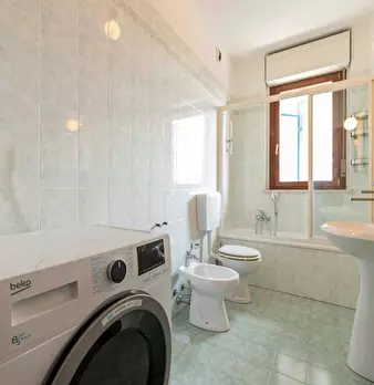La prima cosa che colpisce entrando è l'ampio e luminoso soggiorno, formato da una zona salotto (divano, scrivania con libreria annessa, angolo musicale) e una zona pranzo con un tavolo da 4-6 persone. L'alloggio ha due stanze da letto: una matrim...