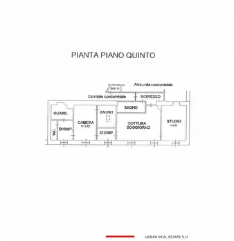 Appartamento al piano basso. Ingresso, soggiorno con cucinotto e balcone, camera matrimoniale, bagno completo con doccia e finestra, ripostiglio. Il riscaldamento è centralizzato e l'acqua calda è regolata da un boiler elettrico. I serramenti sono...
