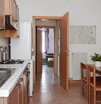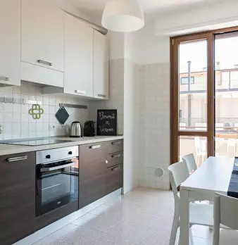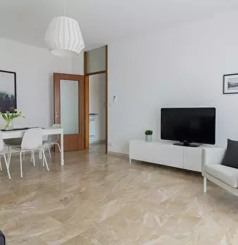 Pregiato bilocale molto ben rifinito ed elegante con dettagli di gusto e materiali eccellenti. Composta da una camera da letto matrimoniale (possono diventare 2 letti singoli) soggiorno con divano letto a due postu, tv, wifi, bagno con doccia, zon...