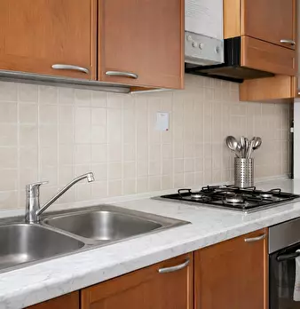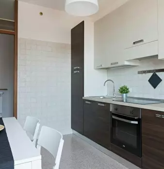 The apartment consists of a large living area with the kitchen with a 4 seaterwhite table in a modern style and a big white sofa. The bathroom has a large shower. The apartment is located on the fourth floor of a building with elevator. The apart...