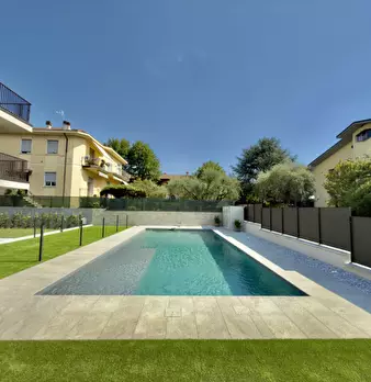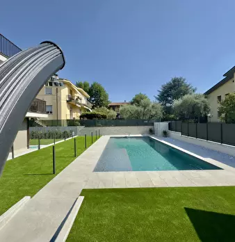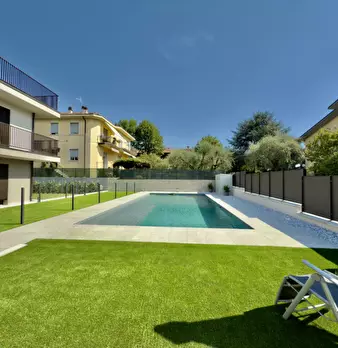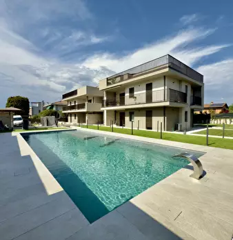Un residence riservato, moderno e sostenibile, a due passi dalle mura storiche di Lazise. Piscina effetto spiaggia, vasca idromassaggio e spazi curati in ogni dettaglio. Classe energetica A4, soluzioni tecnologiche di ultima generazione Posto aut...