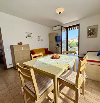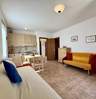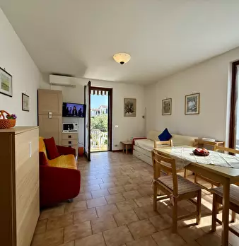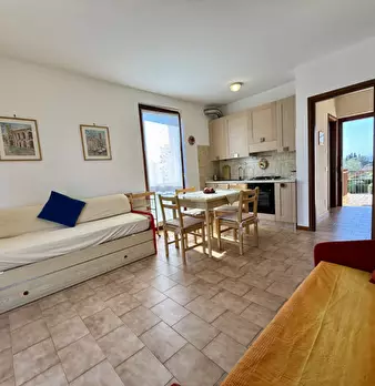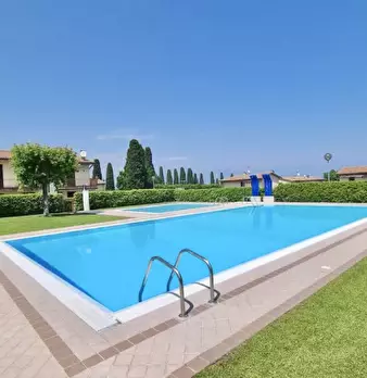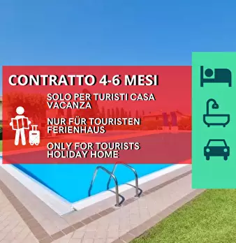 Svegliati con la piscina, addormentati a due passi dal lago. Bilocale in residence con piscina, ideale per soggiorni turistici di 4-6 mesi (contratto transitorio). Fino a 4-5 posti letto: camera matrimoniale + 2 divani letto. Dotato di soggiorno-c...