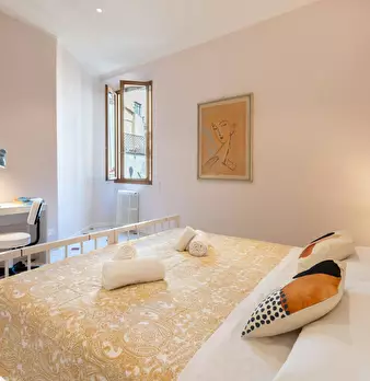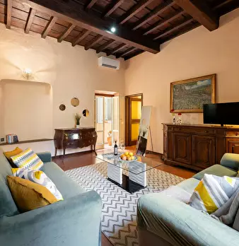 Cozy apartment in the historic center of Florence, located on the second floor. It features a living room with a fully equipped kitchen, one double bedroom, one bedroom with two single beds, and one bathroom. Equipped with heating and air conditio...