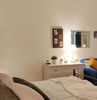 Ogni camera è dotata di: - Cucina completamente attrezzata con lavello, piano cottura a induzione, forno a microonde e tradizionale, frigorifero. - Letto da 120 cm. - Angolo studio con scrivania e sedia. - Scaffali, guardaroba e mobili da cucina....
