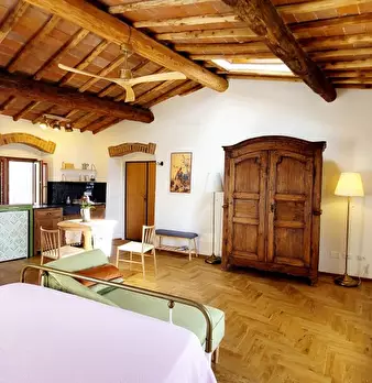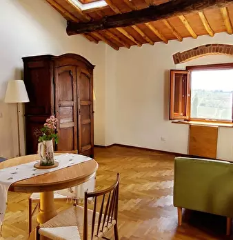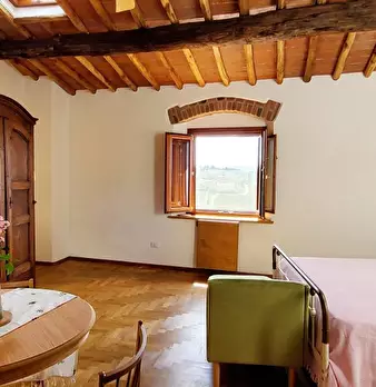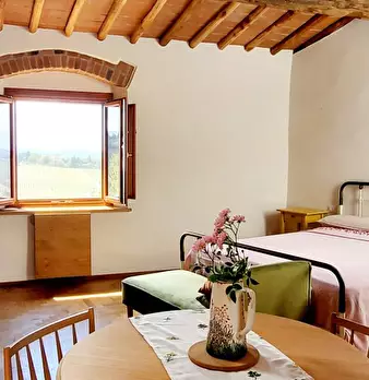 Questo grazioso monolocale a Greve in Chianti offre uno spazio ben arredato con aria condizionata individuale per il raffrescamento. La cucina è attrezzata per garantire una comoda esperienza culinaria, e una TV è disponibile per il vostro intratt...