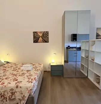 Questo monolocale arredato a Villapizzone, Milano, offre un confortevole spazio abitativo con cucina attrezzata e climatizzatori individuali. La struttura ammette animali domestici e fumatori e include servizi come lavatrice e riscaldamento elettr...