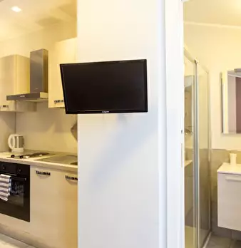 ** Lo spazio accogliente dello studio. ** _Perché voglio una casa accogliente._ ** Mi piacerà qui? ** Noi la pensiamo così Questa proprietà è compatta, ma è sicuramente impostata wee. Una grande TV, aria condizionata e mobili intelligenti a scompa...