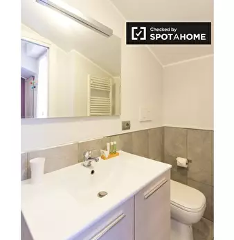 Scopri un monolocale professionale e ideale per studenti a Bovisa, Milano. Questa proprietà completamente arredata vanta aria condizionata centralizzata, cucina attrezzata e lavanderia comune con lavatrici e asciugatrici. La biancheria da letto è ...