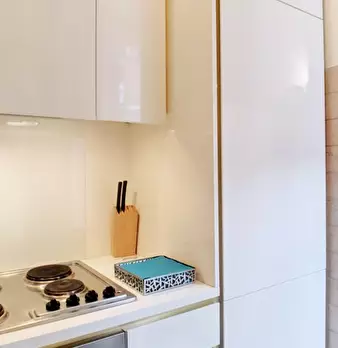 Un moderno monolocale con aria condizionata è disponibile in affitto vicino alla Metro Primaticcio a Lorenteggio. L'appartamento dispone di un'elegante sala principale, dove troverete 2 comodi letti singoli, una TV a schermo piatto, un piccolo tav...