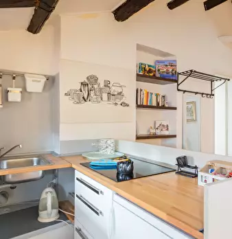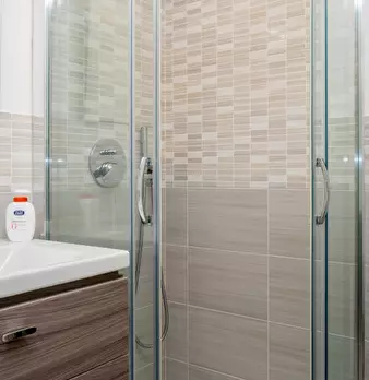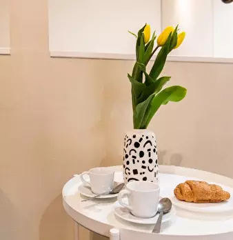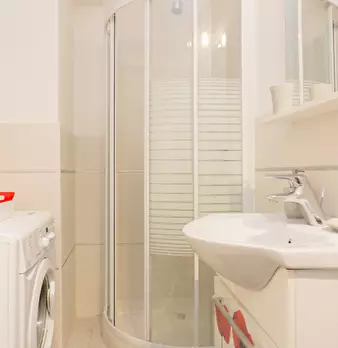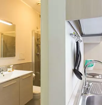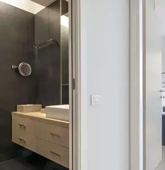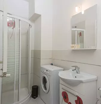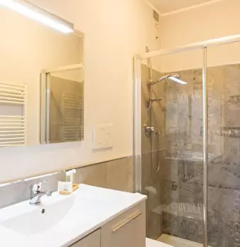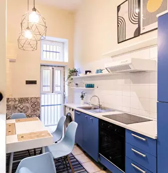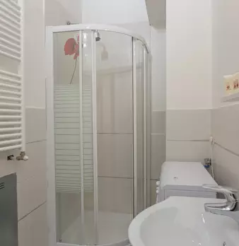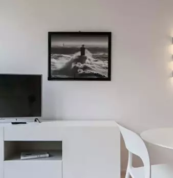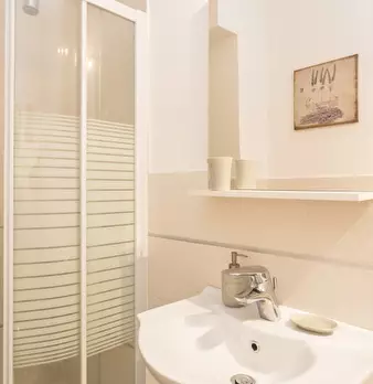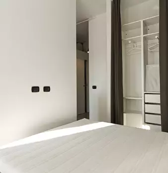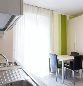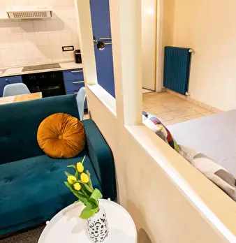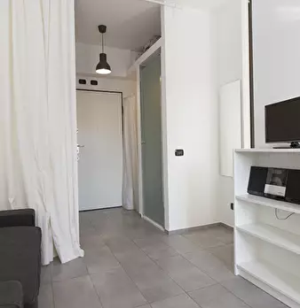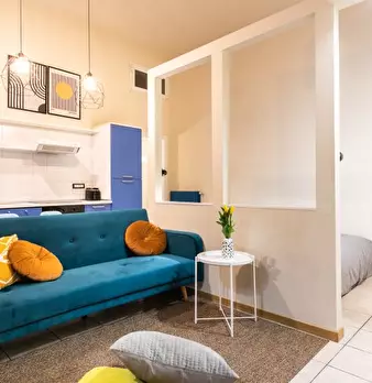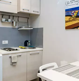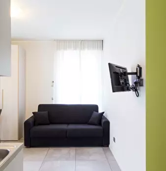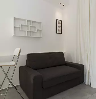 Questo monolocale presenta un ampio soggiorno arredato con divano e tavolo da pranzo. La cucina è moderna e completamente attrezzata con tutto il necessario. C'è anche un bagno con doccia. L'appartamento ha un arredamento minimal ed elegante. Int...
