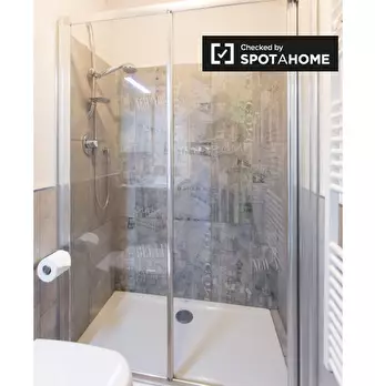 Questo delizioso monolocale in Arco della Pace si trova all'interno della proprietà della padrona di casa, ma è completamente autonomo e ha il proprio bagno e cucina. La proprietà ha un sacco di carattere, con travi in ​​legno e un piano rialzato....
