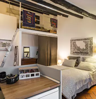 Questo monolocale disponibile in affitto in Morivione è completamente ristrutturato e completamente arredato. L'appartamento dispone di eleganti pavimenti in legno, mobili eleganti e della Pop Art per tocchi di colore in più. Il monolocale ha 1 le...